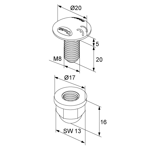 UNEX APARELLAJE ELECTRICO - Bulloneria Unex DIN 603 M8x20 in U23X 66809