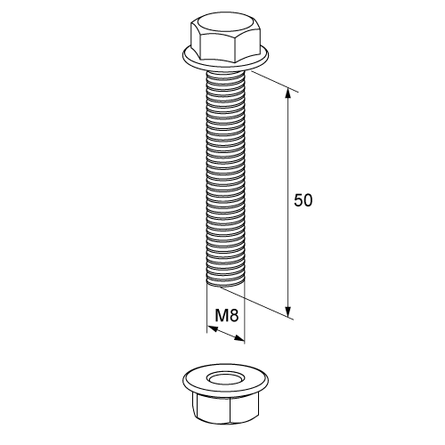 UNEX APARELLAJE ELECTRICO - Bulloni con dado Unex DIN 6921 M8x50 in Galvanizzato classe 6 66859-C6
