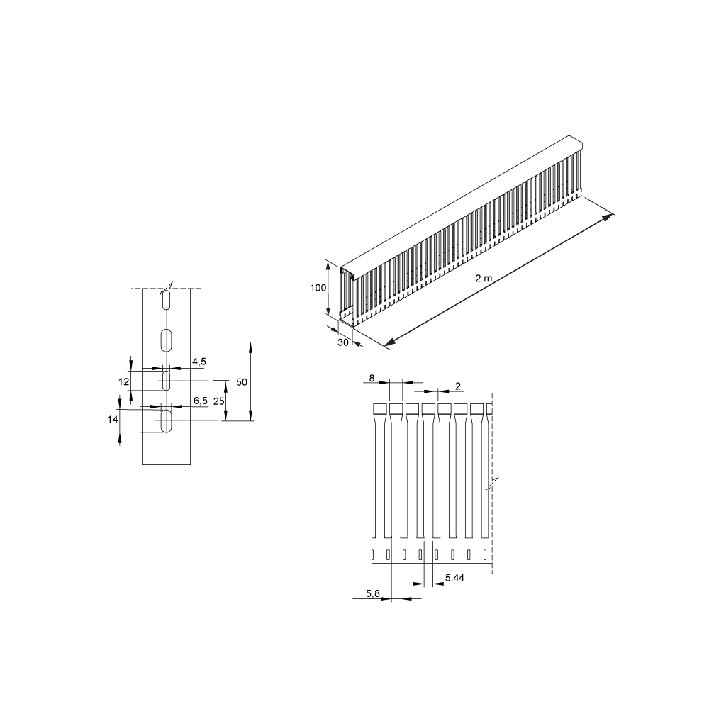 UNEX APARELLAJE ELECTRICO - Canale per cablaggio 100x30 mm Unex in U43X senza alogeni 100.30.88