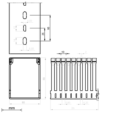 Per la conduzioni di cavi in quadri elettrici e di telecomunicazioni. Materiale isolante. Sicurezza contro il fuoco: test del filo incandescente a 960 °C; non propagatore della fiamma. Facilità di installazione e manutenzione. Facile montaggio e smontaggio del coperchio, sicurezza di chiusura. Sicurezza nell'uso e riduzione di costi. Assenza di sbavature e punte taglienti. Linguette flessibili, resistenti ed arrotondate: facili da tagliare, non si rompono accidentalmente ed evitano danni agli utenti ed ai cavi. Distanza fra linguette fino a 6mm2 per la derivazione dei cavi. Possibilità di derivare fino alla base. Lunghezza: 2m. Colore: blu RAL 5012.