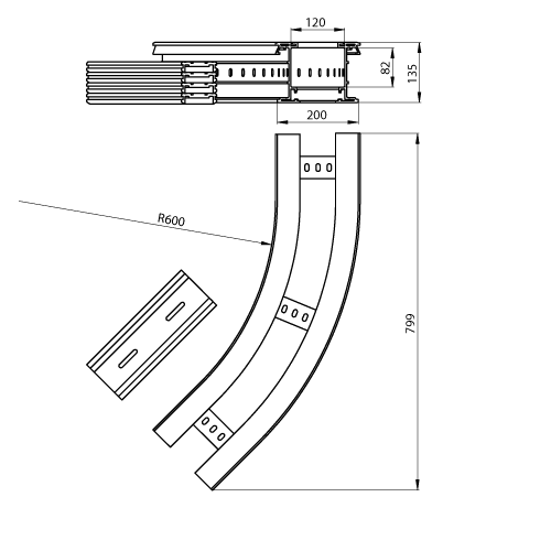 Adatto per larghezza della scala portacavi - 200 mm