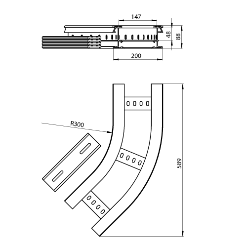 UNEX APARELLAJE ELECTRICO - Curva piana 45º Unex 85x200 R300 in U23X
