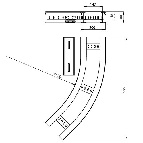 UNEX APARELLAJE ELECTRICO - Curva piana 45º Unex 85x200 R600 in U23X