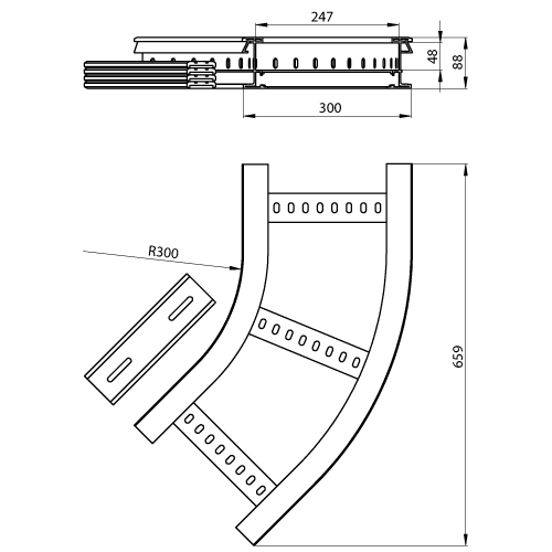 Adatto per larghezza della scala portacavi - 300 mm