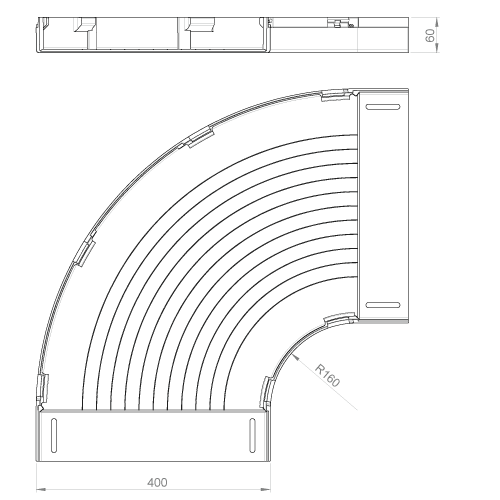 Per realizzare angoli di 90° nelle istallazioni di passerella. Copre i tagli della passerella e del coperchio, permettendo una migliore finitura dell’impianto. Si consiglia di collocare i supporti sotto la curva piana. Colore: Grigio. Materiale isolante. Sicurezza elettrica, meccanica ed in caso di incendio. Non perde sezione rispetto alla passerella. Facilità e rapidità di montaggio. Non si ha bisogno di giunti per il montaggio.