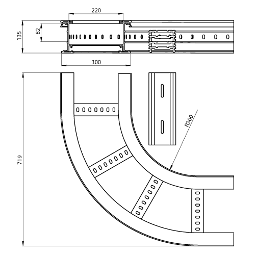 UNEX APARELLAJE ELECTRICO - Curva piana 90º Unex 135x300 R300 in U23X