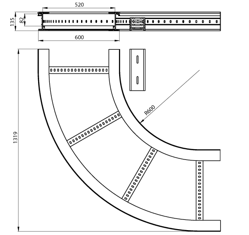 UNEX APARELLAJE ELECTRICO - Curva piana 90º Unex 135x600 R600 in U23X