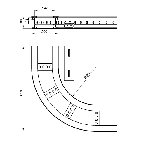 Adatto per larghezza della scala portacavi - 200 mm