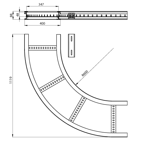 UNEX APARELLAJE ELECTRICO - Curva piana 90º Unex 85x400 R600 in U23X