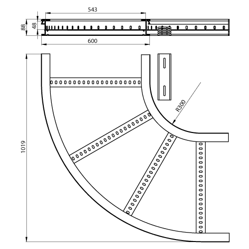 UNEX APARELLAJE ELECTRICO - Curva piana 90º Unex 85x600 R300 in U23X