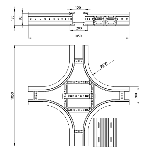 UNEX APARELLAJE ELECTRICO - Derivazione piana a croce Unex 135x200 R300 in U23X