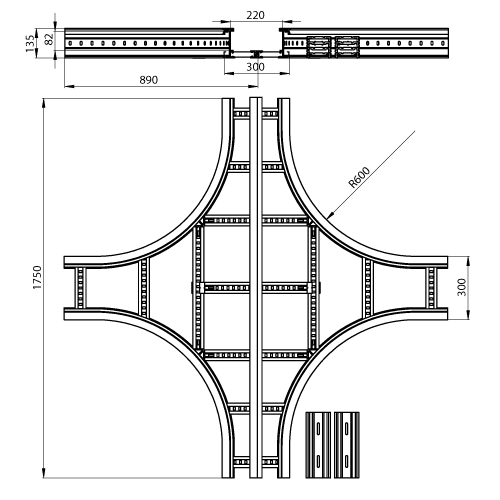 UNEX APARELLAJE ELECTRICO - Derivazione piana a croce Unex 135x300 R600 in U23X 67329-04