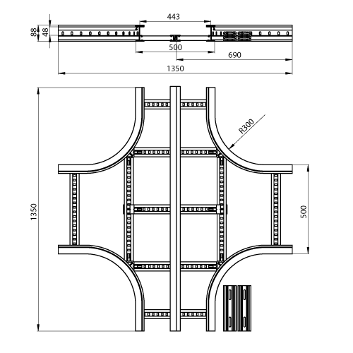 UNEX APARELLAJE ELECTRICO - Derivazione piana a croce Unex 85x500 R300 in U23X