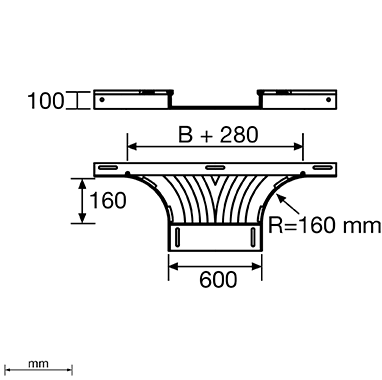 altezza del canale portacavi - 100 mm