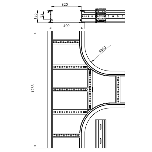 Adatto per larghezza della scala portacavi - 400 mm