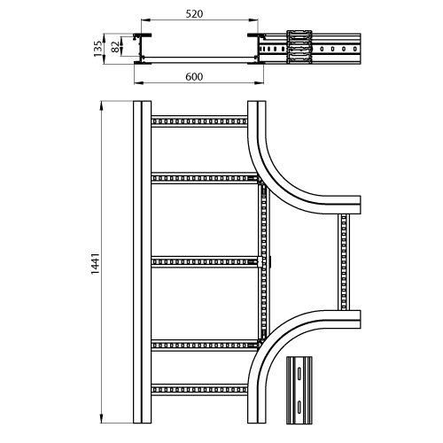 Adatto per larghezza della scala portacavi - 600 mm