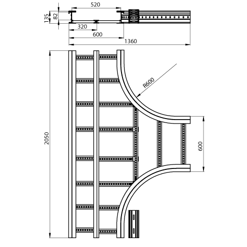 Adatto per larghezza della scala portacavi - 600 mm