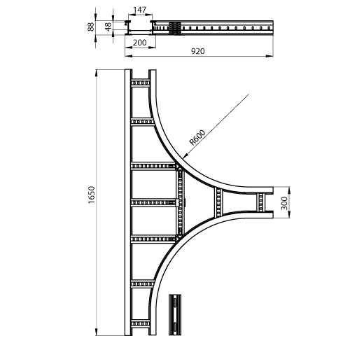 Adatto per larghezza della scala portacavi - 200 mm