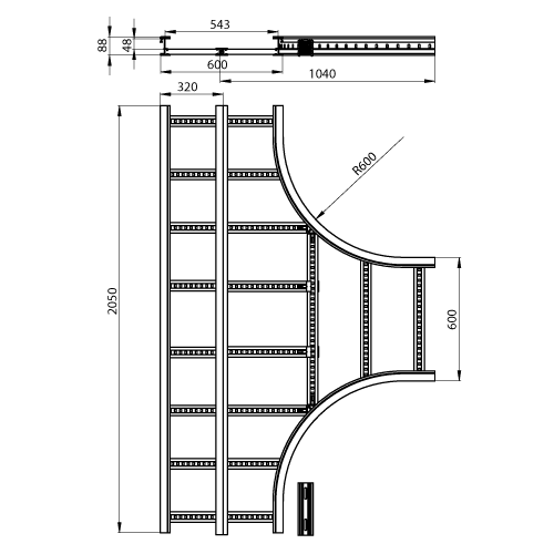Adatto per larghezza della scala portacavi - 600 mm
