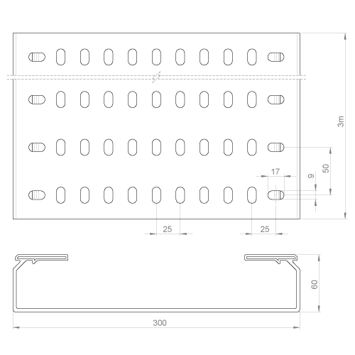 UNEX APARELLAJE ELECTRICO - Passerella fondo forato Unex 60x300 in U23X 66300