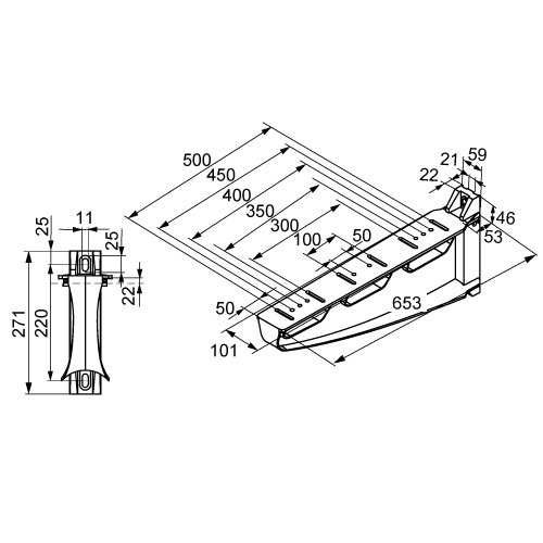adatto per larghezza sistema di supporto cavi - 600 mm