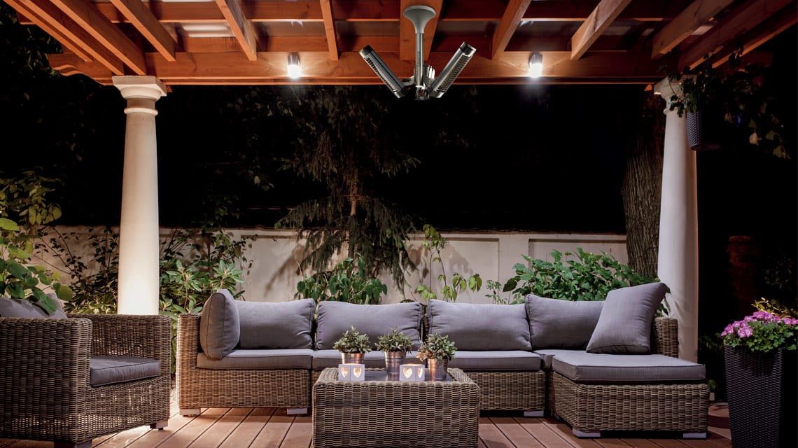 Kit per installazione in verticale a soffitto di 1, 2 o 3 THERMOLOGIKA SOLEIL SYSTEM. La piastra per il fissaggio a soffitto integra al suo interno il dispositivo di connessione alla rete elettrica di tutti gli apparecchi connessi.