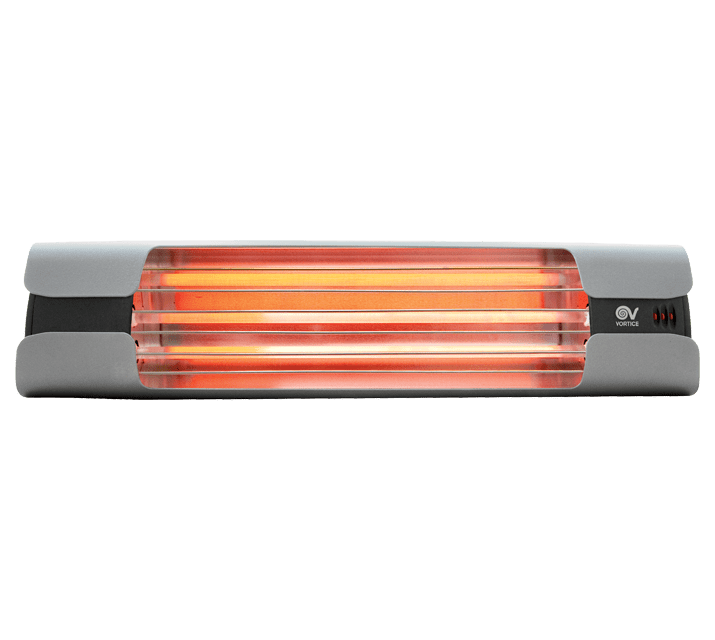 VORTICE - Thermologika design grigio, lampade a raggi infrarossi con fianchi in alluminio nero, gusci grigi, griglia in acciaio inox, staffa inclinabile.