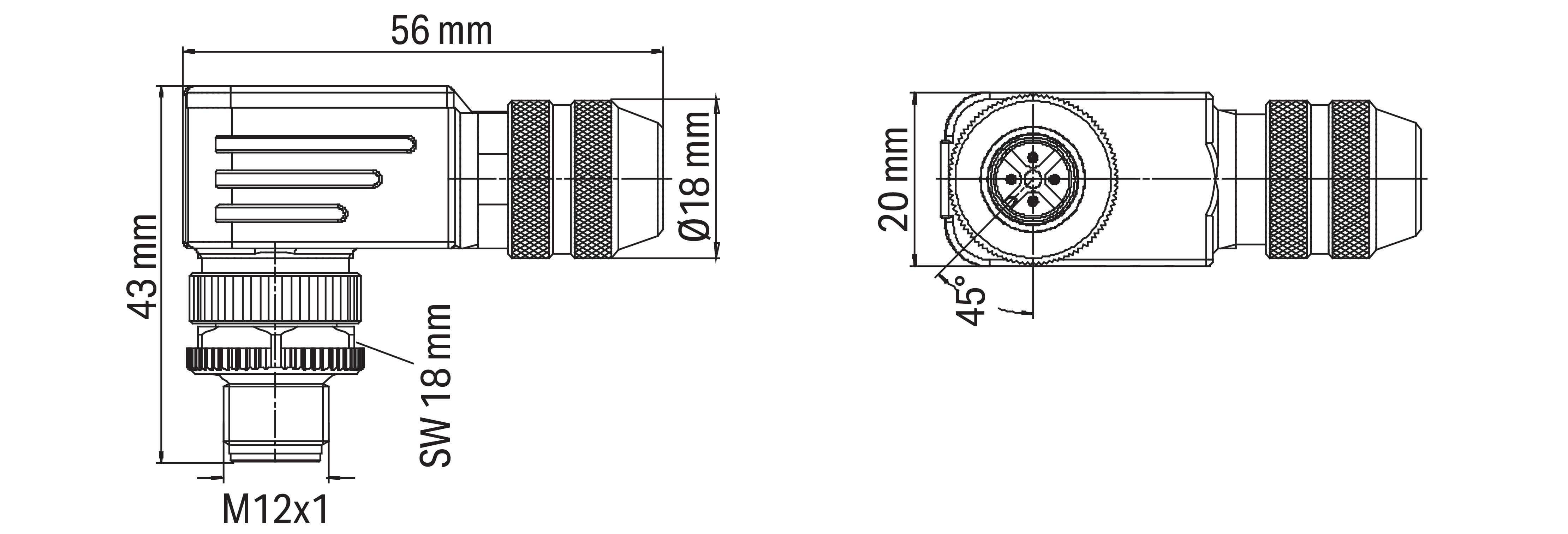 WAGO ELETTRONICA - Accessori.Spina angolata destra M12.5 poli