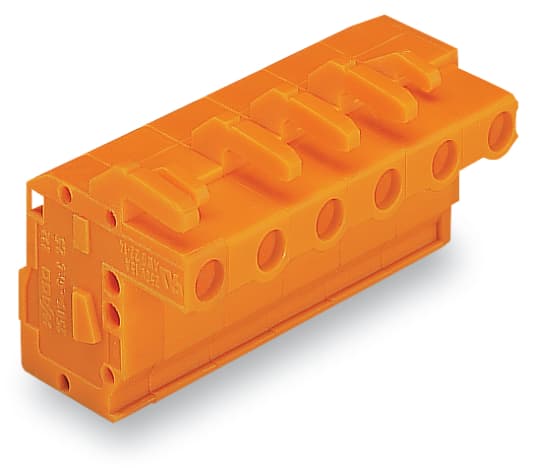 Connettore femmina 1 conduttore, ang.. CAGE CLAMP®. 2,5 mm2. Passo pin 7,62 mm. 7 poli. 2,50 mm2. arancione