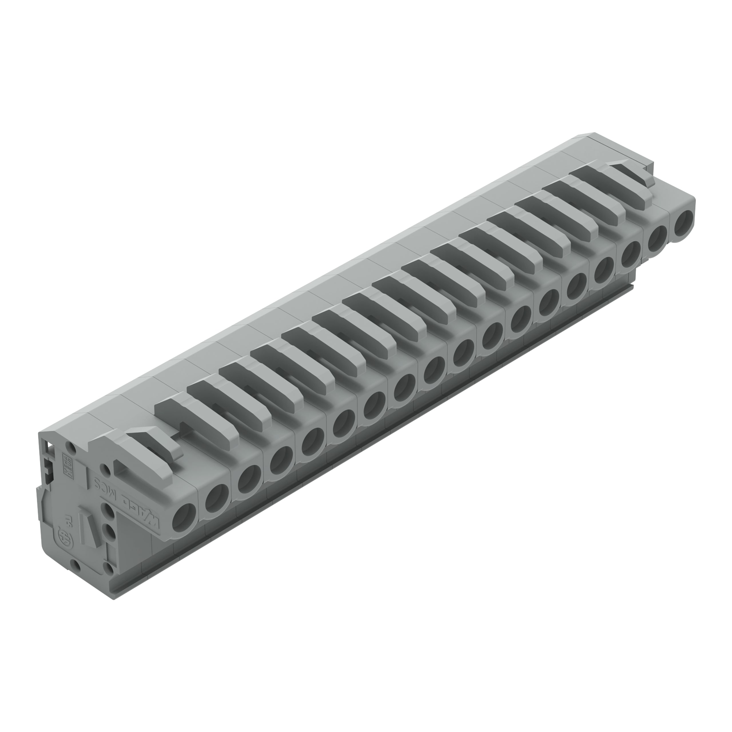 Connettore femmina 1 conduttore, ang.. CAGE CLAMP®. 2,5 mm2. Passo pin 5 mm. 18 poli. 2,50 mm2. grigio