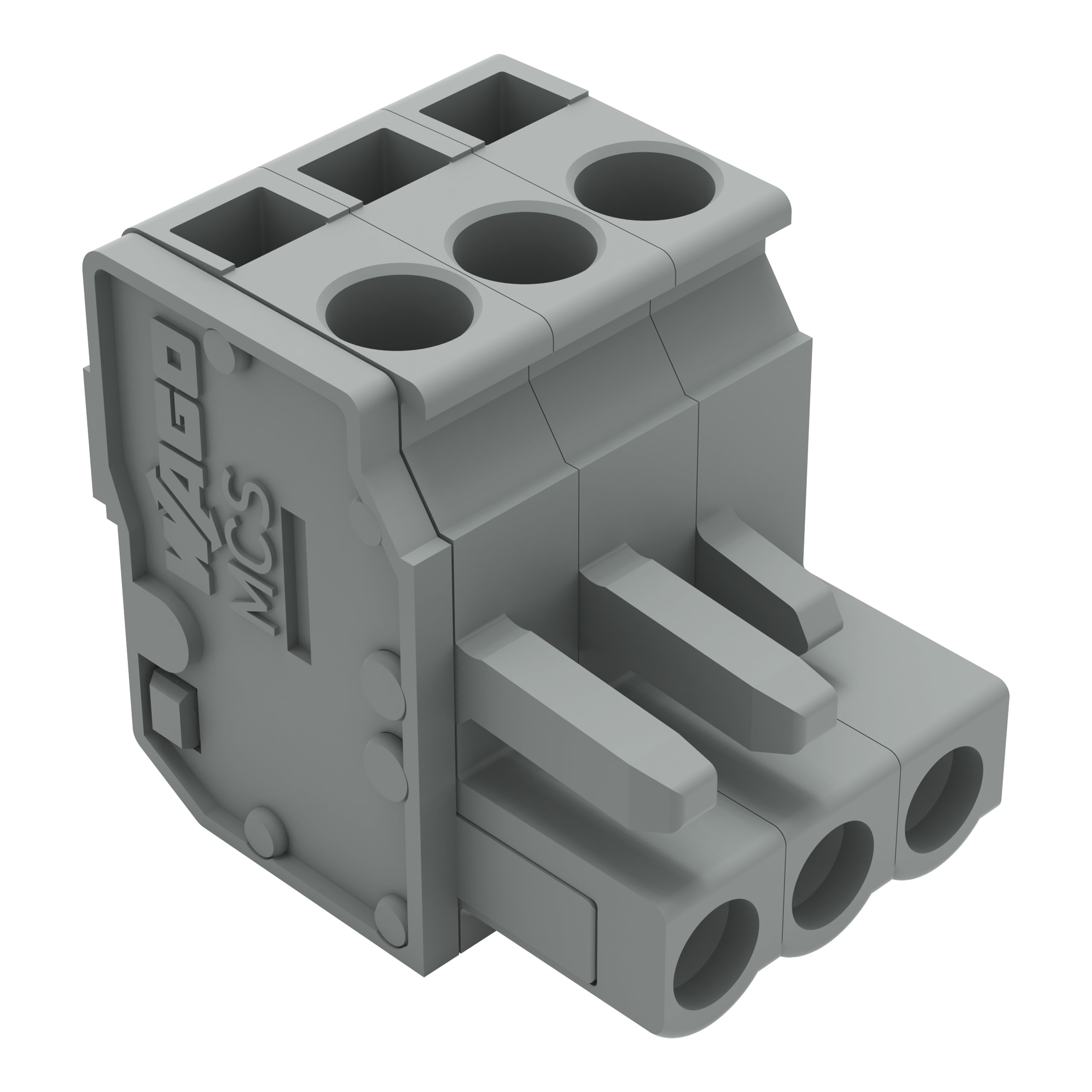 Connettore femmina 1 conduttore, ang.. CAGE CLAMP®. 2,5 mm2. Passo pin 5 mm. 3 poli. 2,50 mm2. grigio
