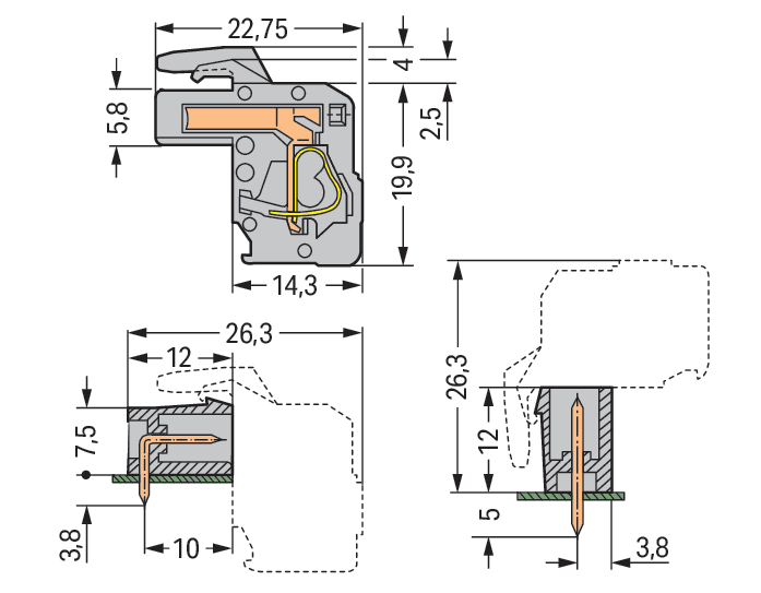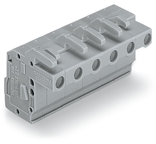 Connettore femmina 1 conduttore, ang.. CAGE CLAMP®. 2,5 mm2. Passo pin 7,5 mm. 10 poli. 2,50 mm2. grigio