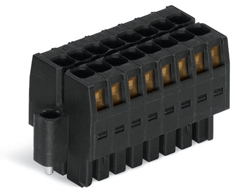 Connettore femmina per 1 conduttore, 2 file. CAGE CLAMP®. 1,5 mm2. Passo pin 3,5 mm. 30 poli. Protetto al 100% contro l'inversione di polarità. Flangia a vite. 1,50 mm2. nero