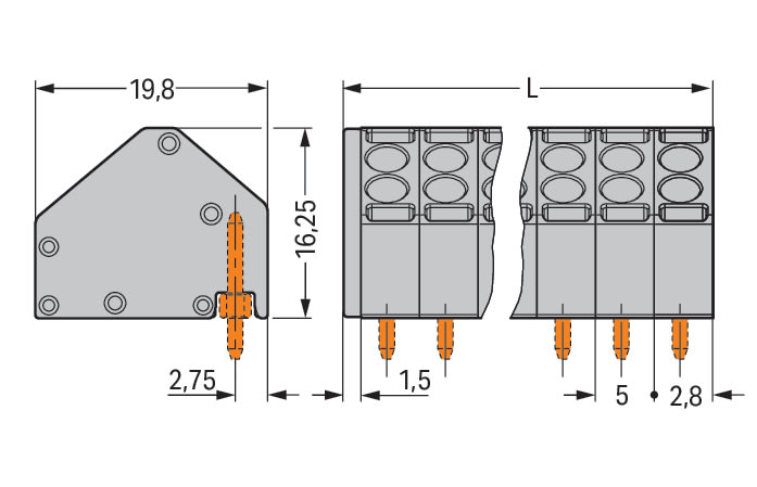 WAGO ELETTRONICA - Connettore femmina per 2 conduttori.1,5 mm².Passo pin 5 mm.grigio 806-112