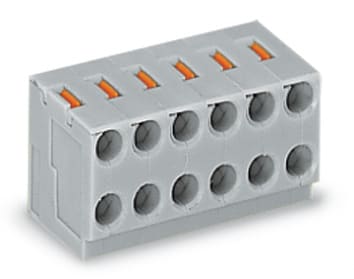 Connettore femmina per 2 conduttori. pulsante. PUSH WIRE®. Ø 0,8 mm. Passo pin 3,5 mm. 5 poli. per striscia di pin a saldare. 0,50 mm2. grigio