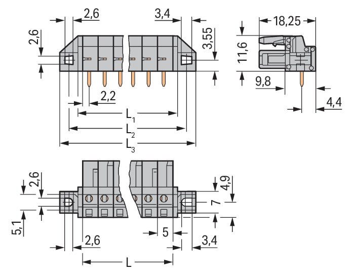 WAGO ELETTRONICA - Connettore femmina THT.angolato.Passo pin 5 mm.grigio 232-240/031-000