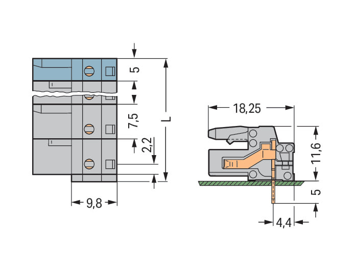 WAGO ELETTRONICA - Connettore femmina THT.angolato.Passo pin 7,5 mm.grigio 232-836