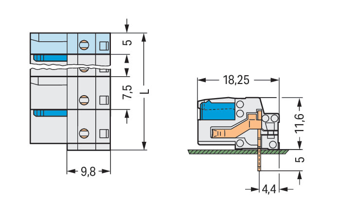 WAGO ELETTRONICA - Connettore femmina THT.angolato.Passo pin 7,5 mm.grigio chiaro 722-834