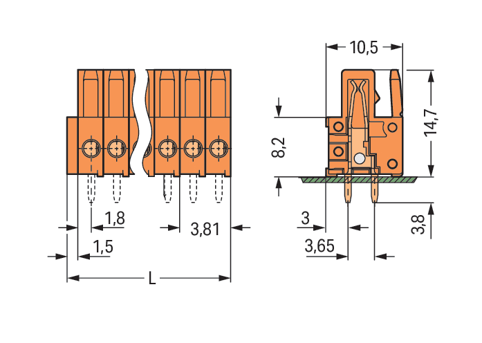 WAGO ELETTRONICA - Connettore femmina THT.dritto.Passo pin 3,81 mm.arancione 734-503