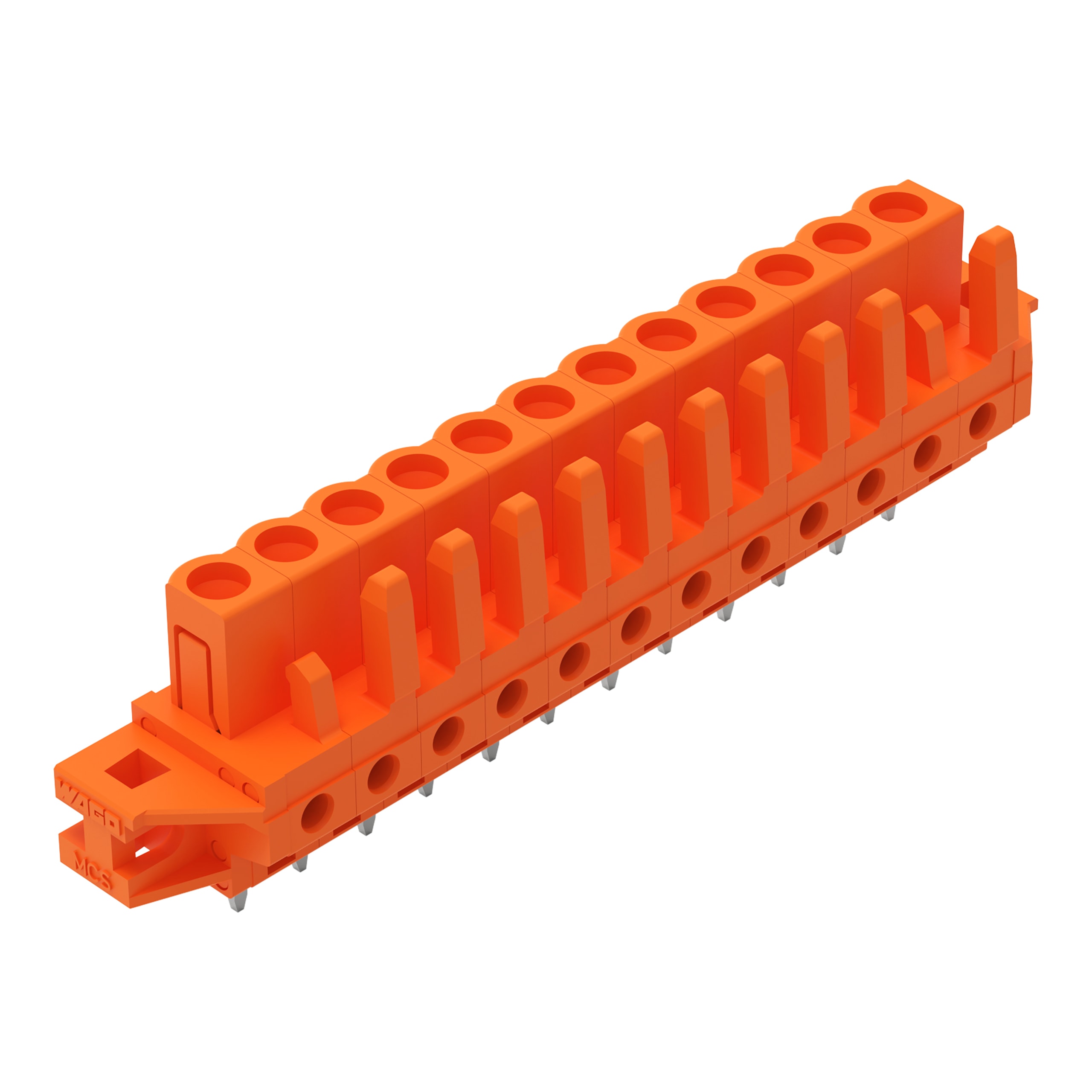 Connettore femmina THT. dritto. Passo pin 5,08 mm. 12 poli. collare di fissaggio. Pin a saldare 0,6 x 1,0 mm. arancione