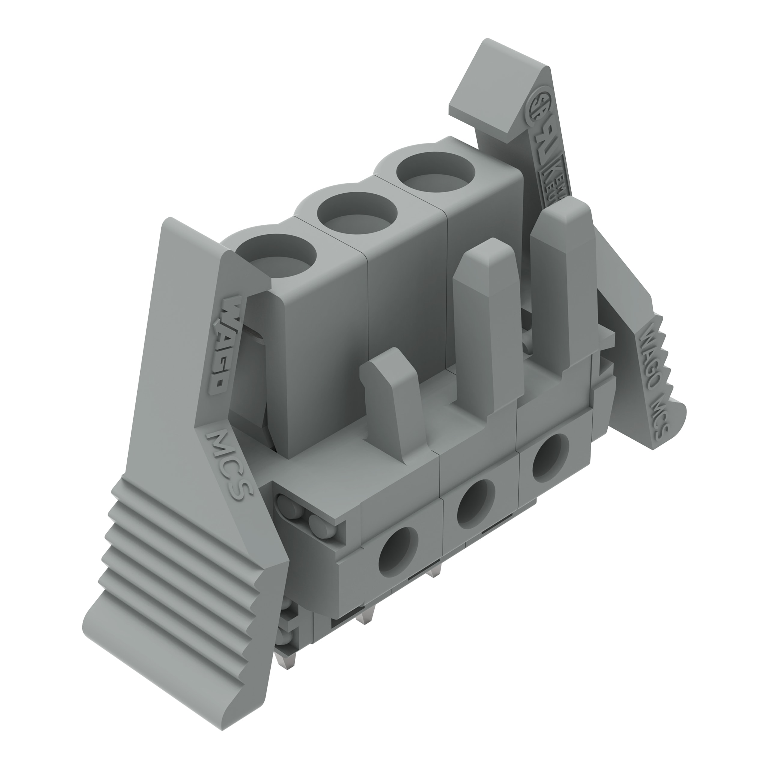 Connettore femmina THT. dritto. Passo pin 5 mm. 3 poli. Leva di bloccaggio. Pin a saldare 0,6 x 1,0 mm. grigio