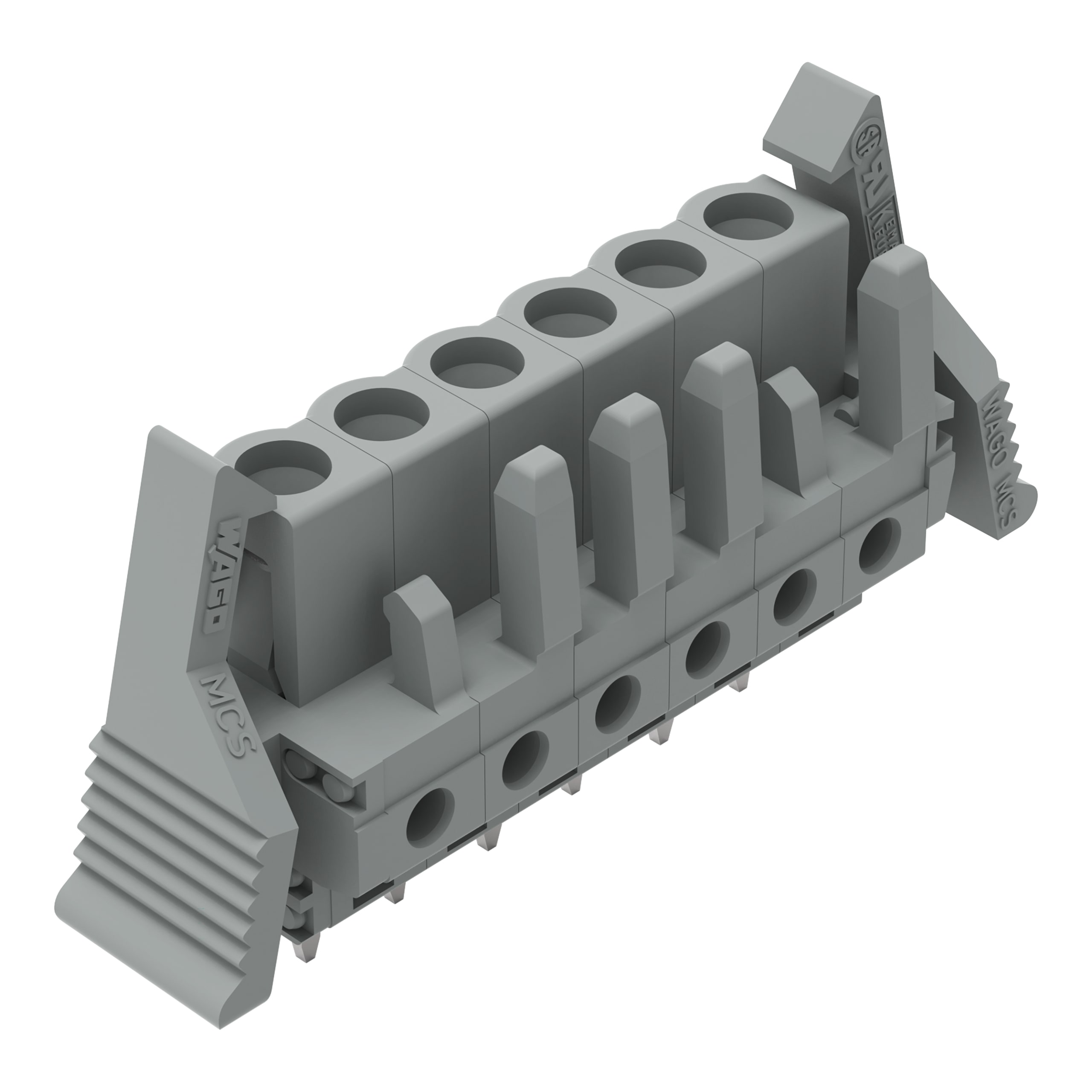 Connettore femmina THT. dritto. Passo pin 5 mm. 6 poli. Leva di bloccaggio. Pin a saldare 0,6 x 1,0 mm. grigio