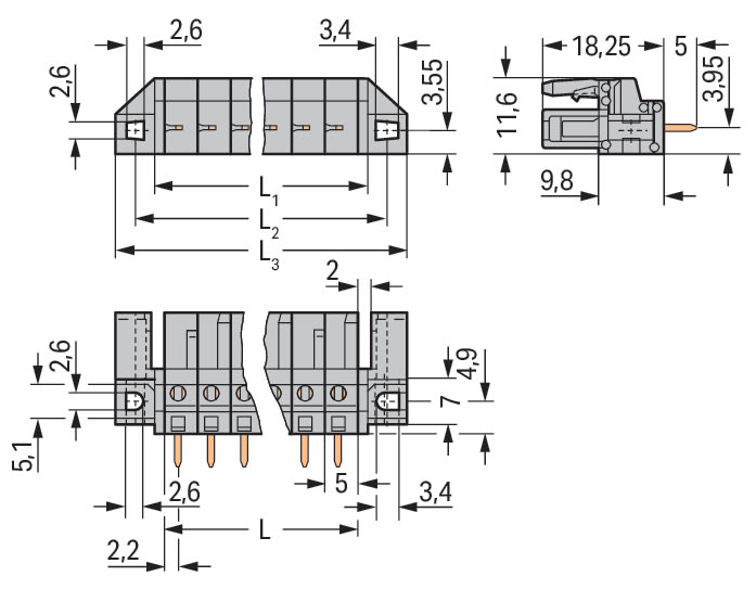 WAGO ELETTRONICA - Connettore femmina THT.dritto.Passo pin 5 mm.grigio 232-136/047-000