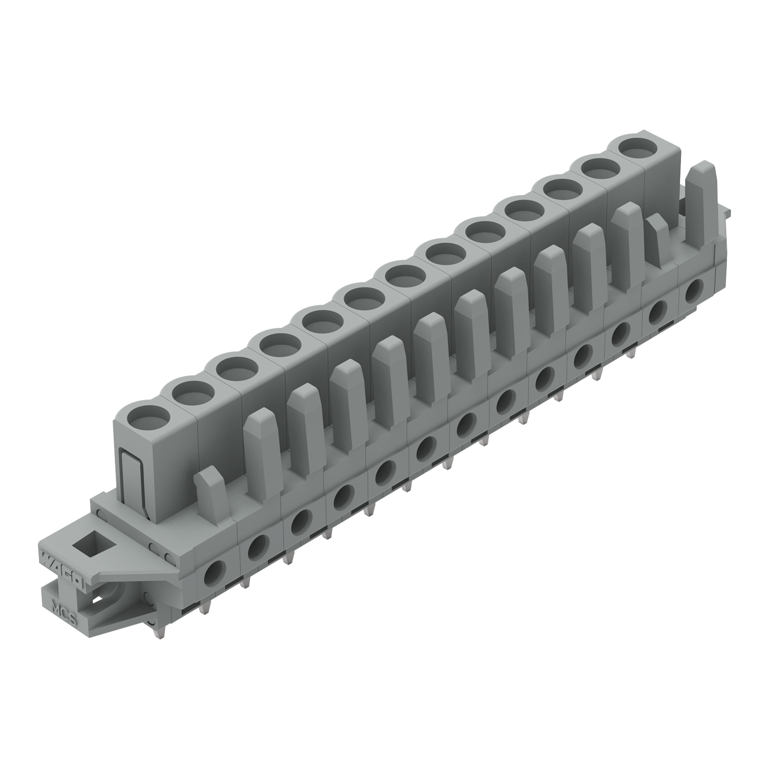 Connettore femmina THT. dritto. Passo pin 5 mm. 13 poli. collare di fissaggio. Pin a saldare 0,6 x 1,0 mm. grigio
