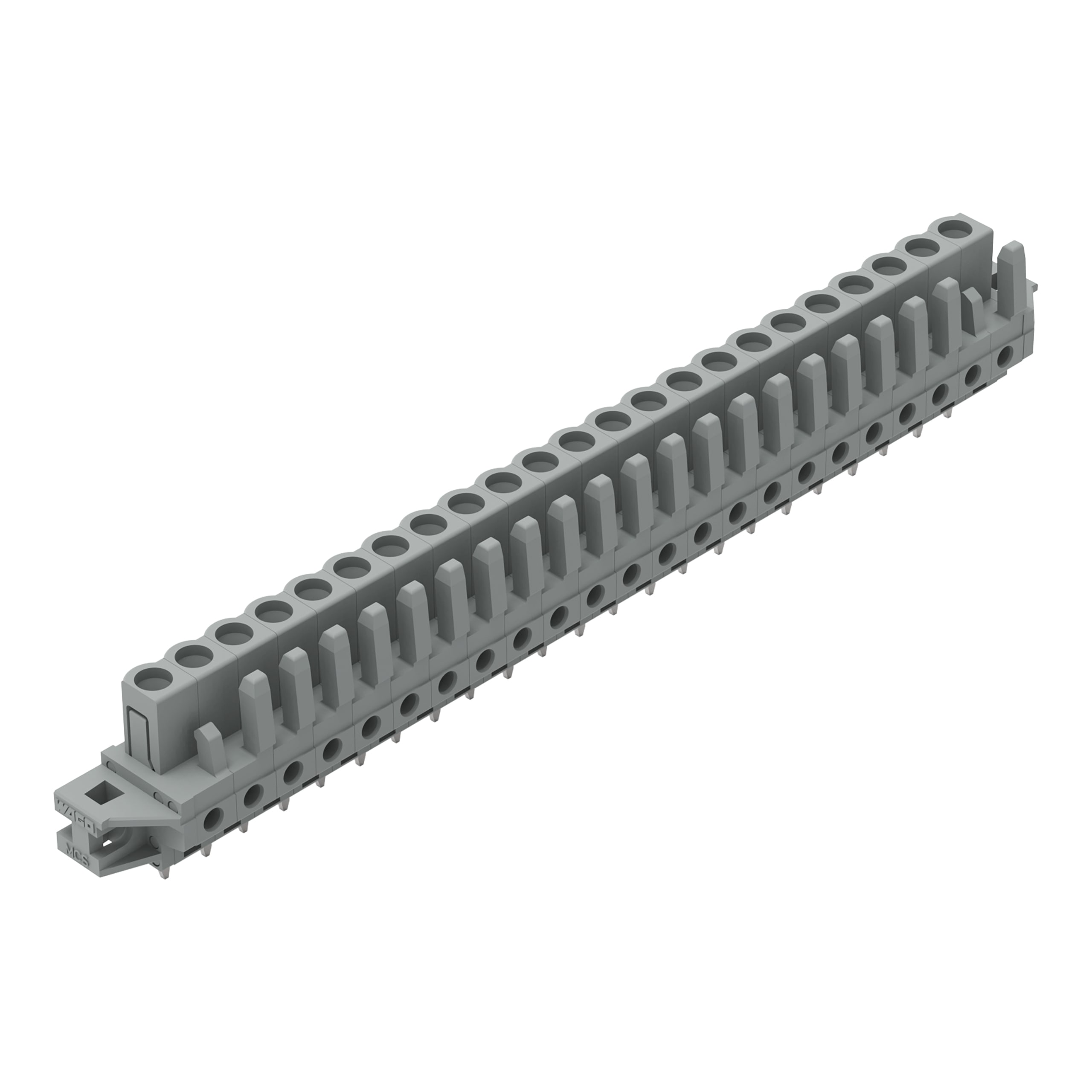 Connettore femmina THT. dritto. Passo pin 5 mm. 23 poli. collare di fissaggio. Pin a saldare 0,6 x 1,0 mm. grigio