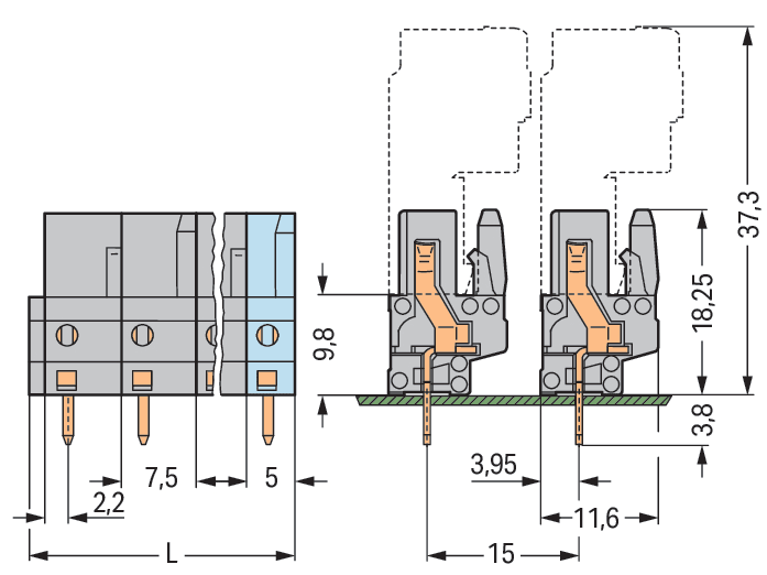 WAGO ELETTRONICA - Connettore femmina THT.dritto.Passo pin 7,5 mm.grigio 232-735/045-000