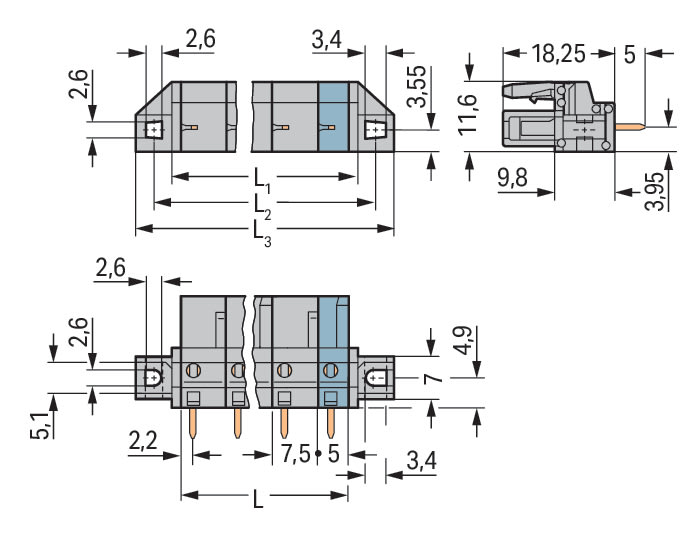 WAGO ELETTRONICA - Connettore femmina THT.dritto.Passo pin 7,5 mm.grigio 232-736/031-000