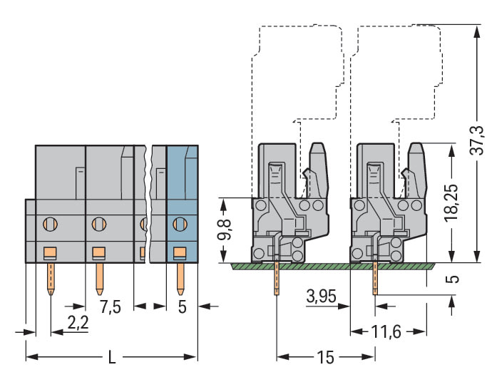 WAGO ELETTRONICA - Connettore femmina THT.dritto.Passo pin 7,5 mm.grigio 232-743