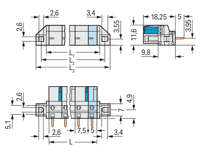 WAGO ELETTRONICA - Connettore femmina THT.dritto.Passo pin 7,5 mm.grigio chiaro 722-738/031-000