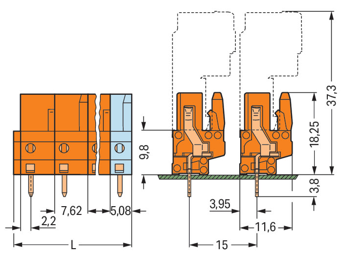 WAGO ELETTRONICA - Connettore femmina THT.dritto.Passo pin 7,62 mm.arancione 232-769/045-000